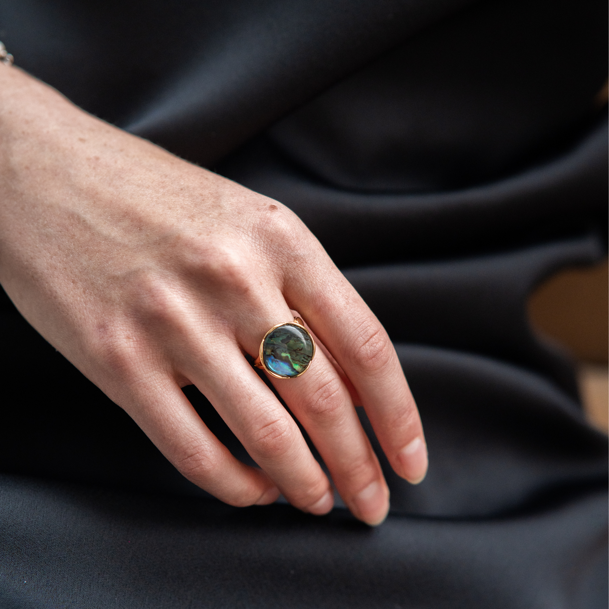 • Abalone shell rings, each ring has a unique pattern. The size is adjustable.