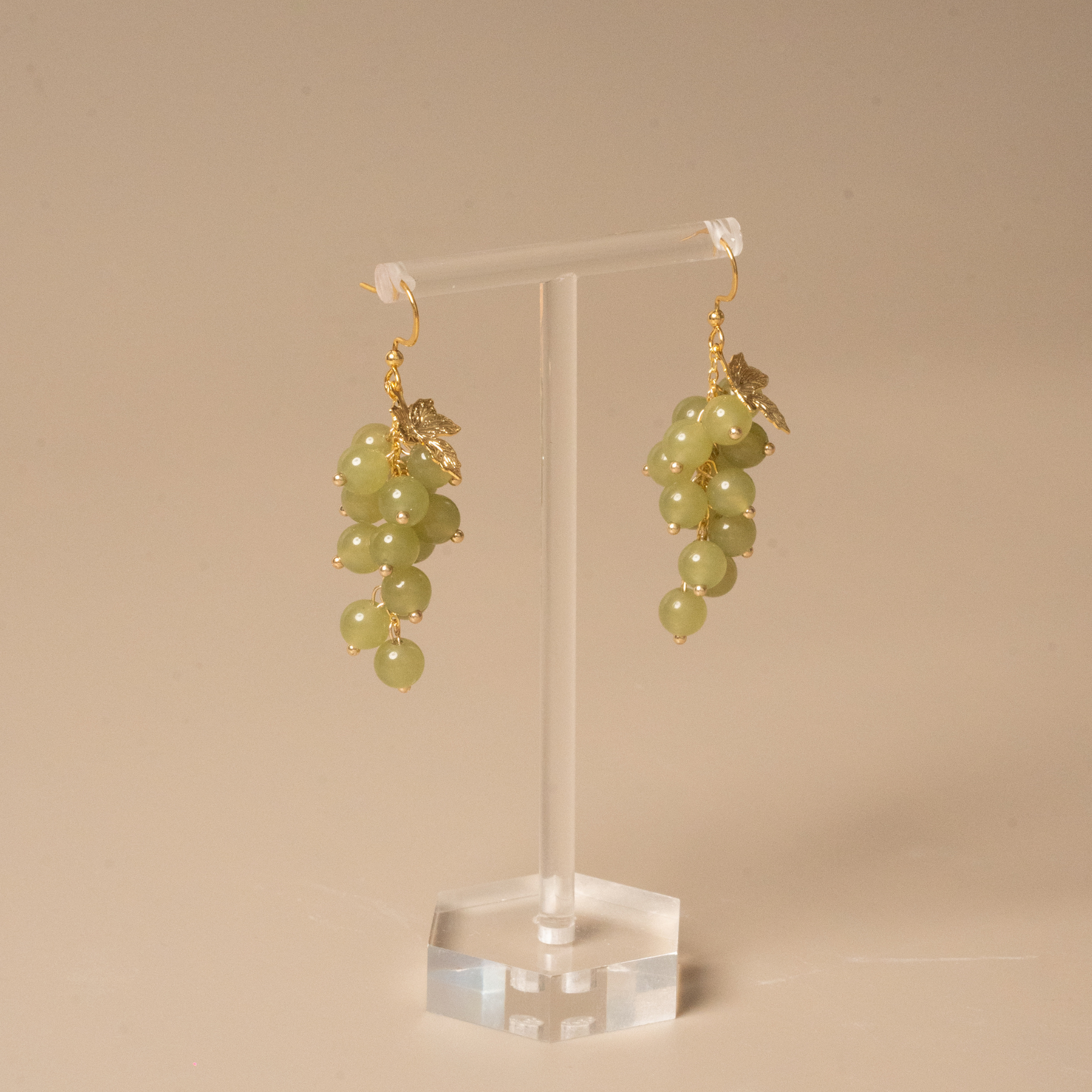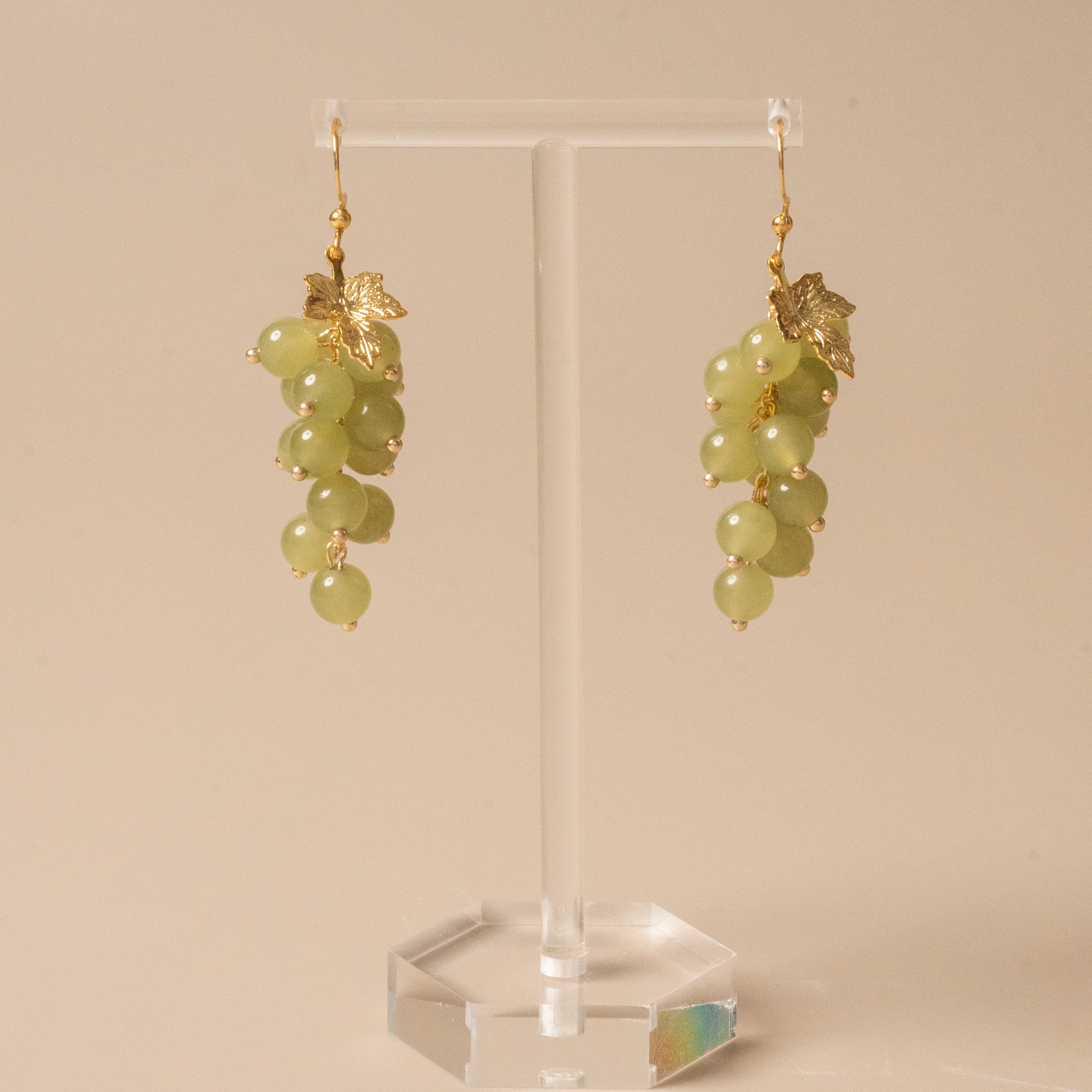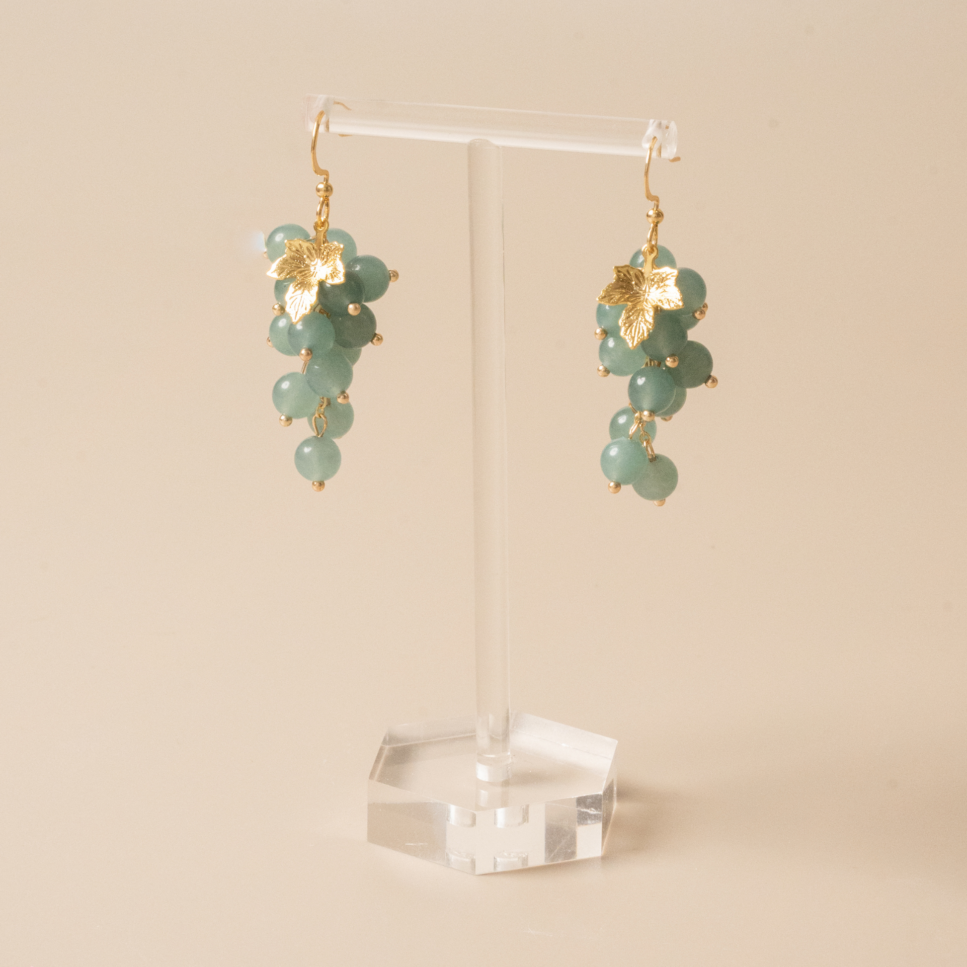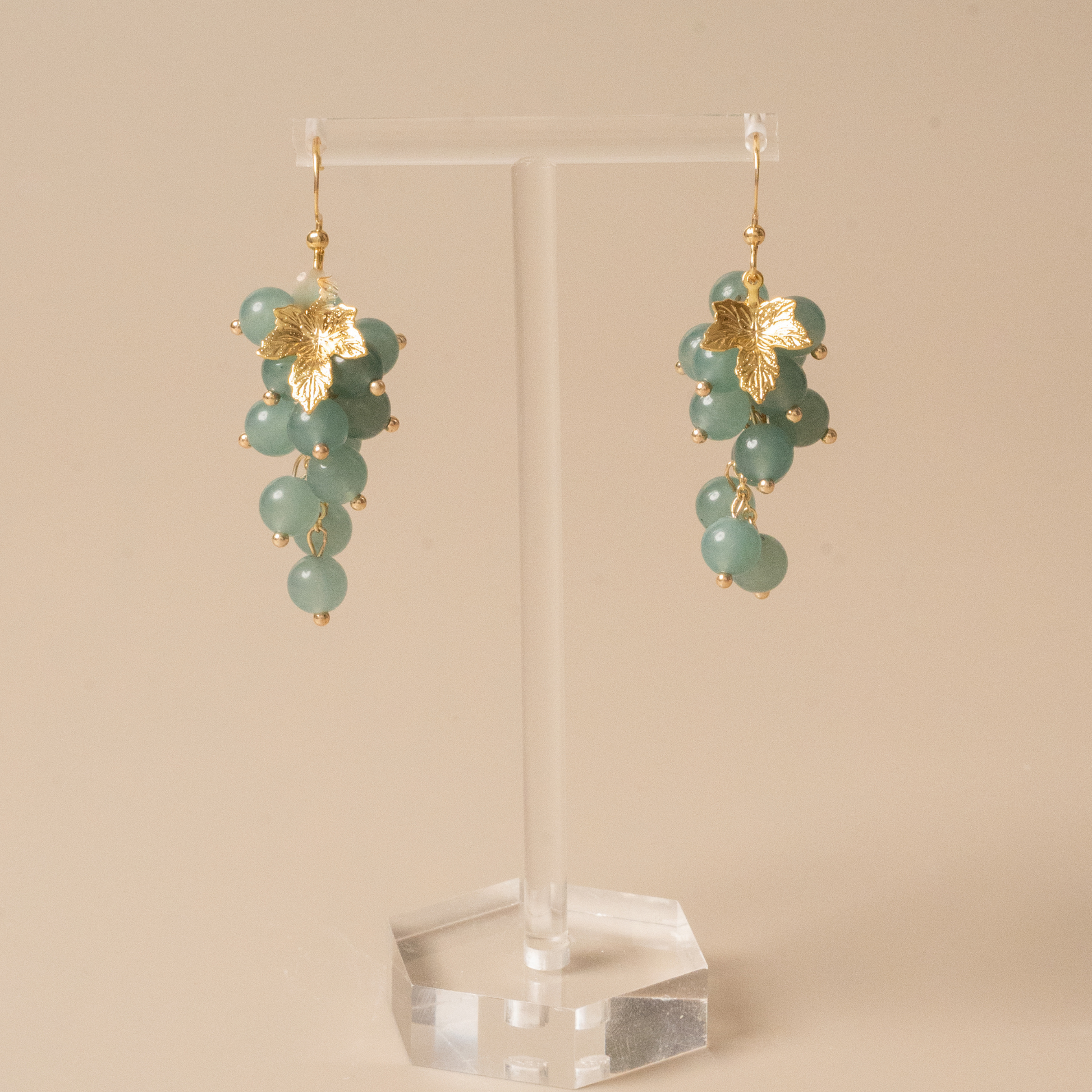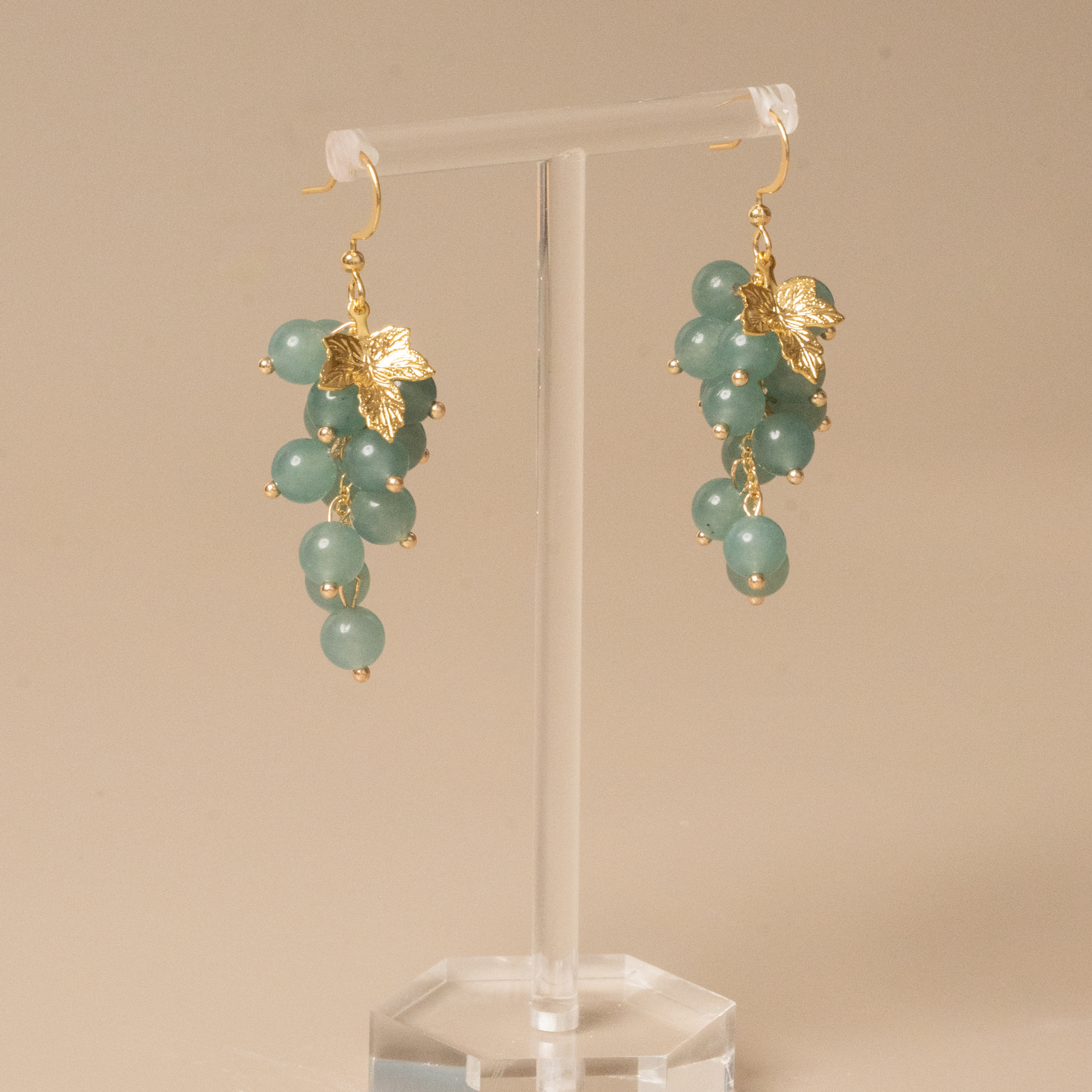 • The playful earrings feature clusters of green gemstone beads crowned with delicate golden leaves. A fresh, nature-inspired design that adds charm and fresh to your look.