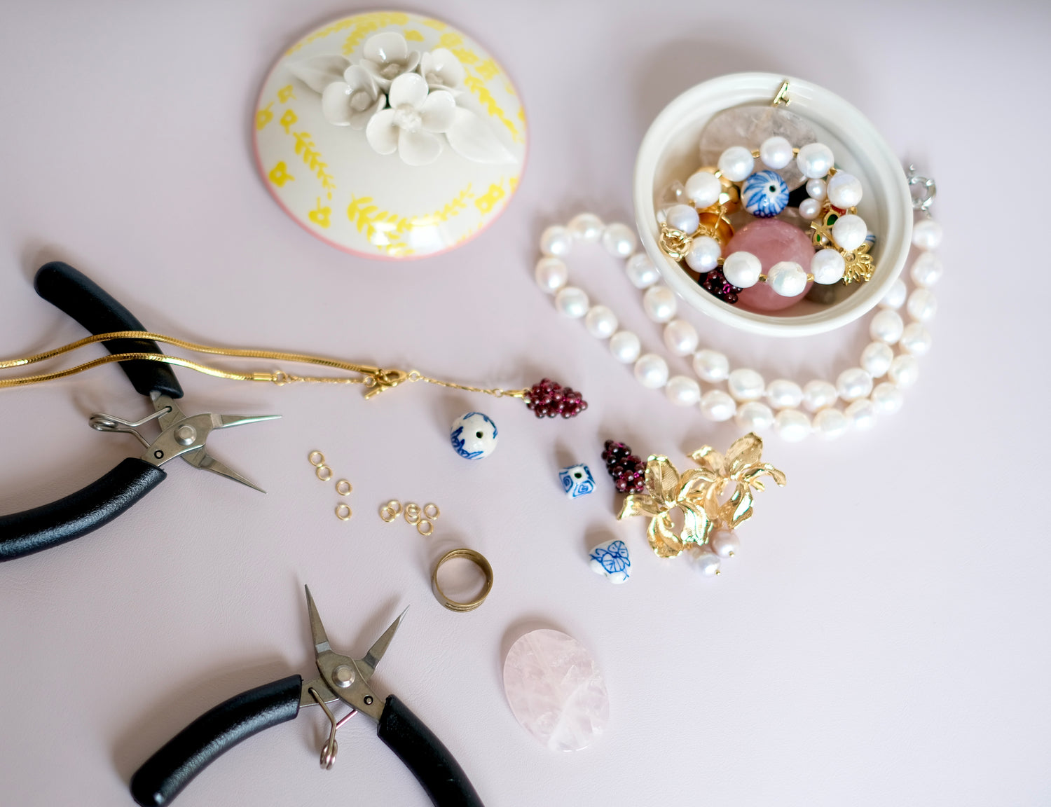 Some of the basic pearl and stone pieces in our jewelry come from shops in Toronto, while other vintage beads and uniquely shaped crystals are sourced from around the world. However, these special gemstones are available in limited quantities, which is why some of our designs are produced in only a few pieces.