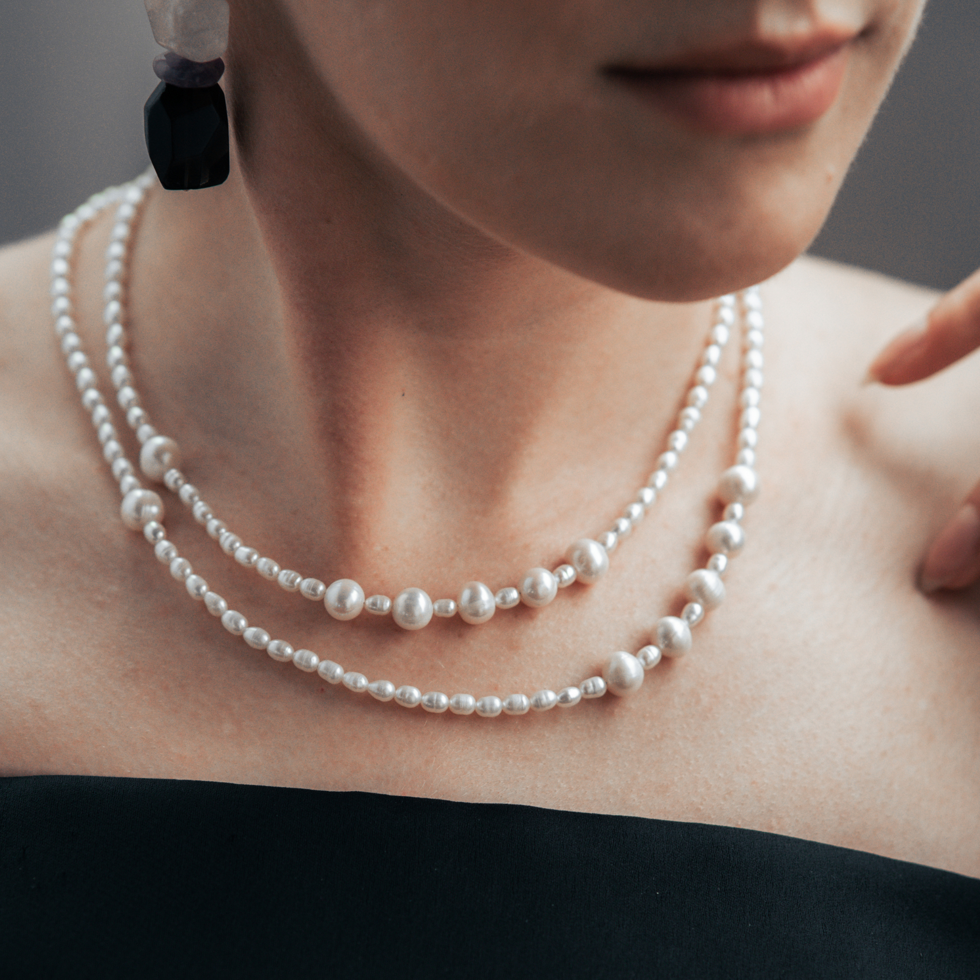 Some of the basic pearl and stone pieces in our jewelry come from shops in Toronto, while other vintage beads and uniquely shaped crystals are sourced from around the world. However, these special gemstones are available in limited quantities, which is why some of our designs are produced in only a few pieces.
