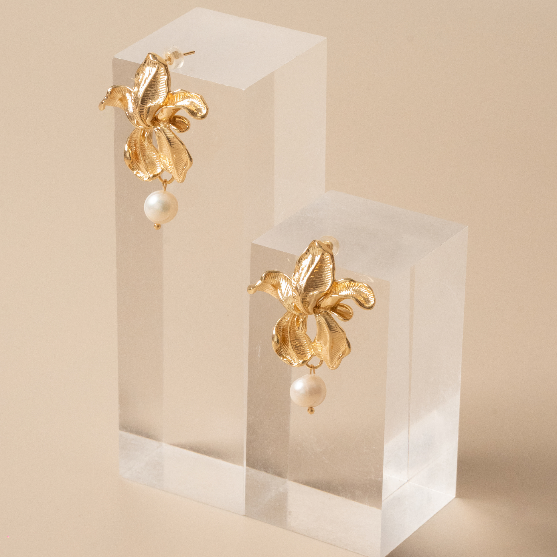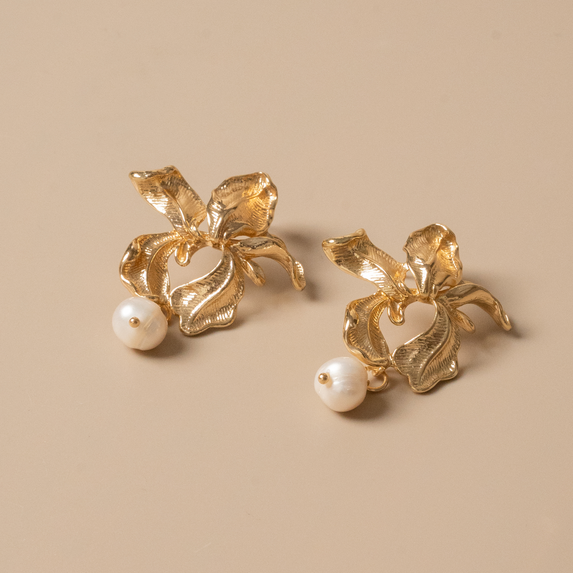 • Gold flower petals meet the timeless beauty of pearls, creating a statement piece that’s both romantic and sophisticated.