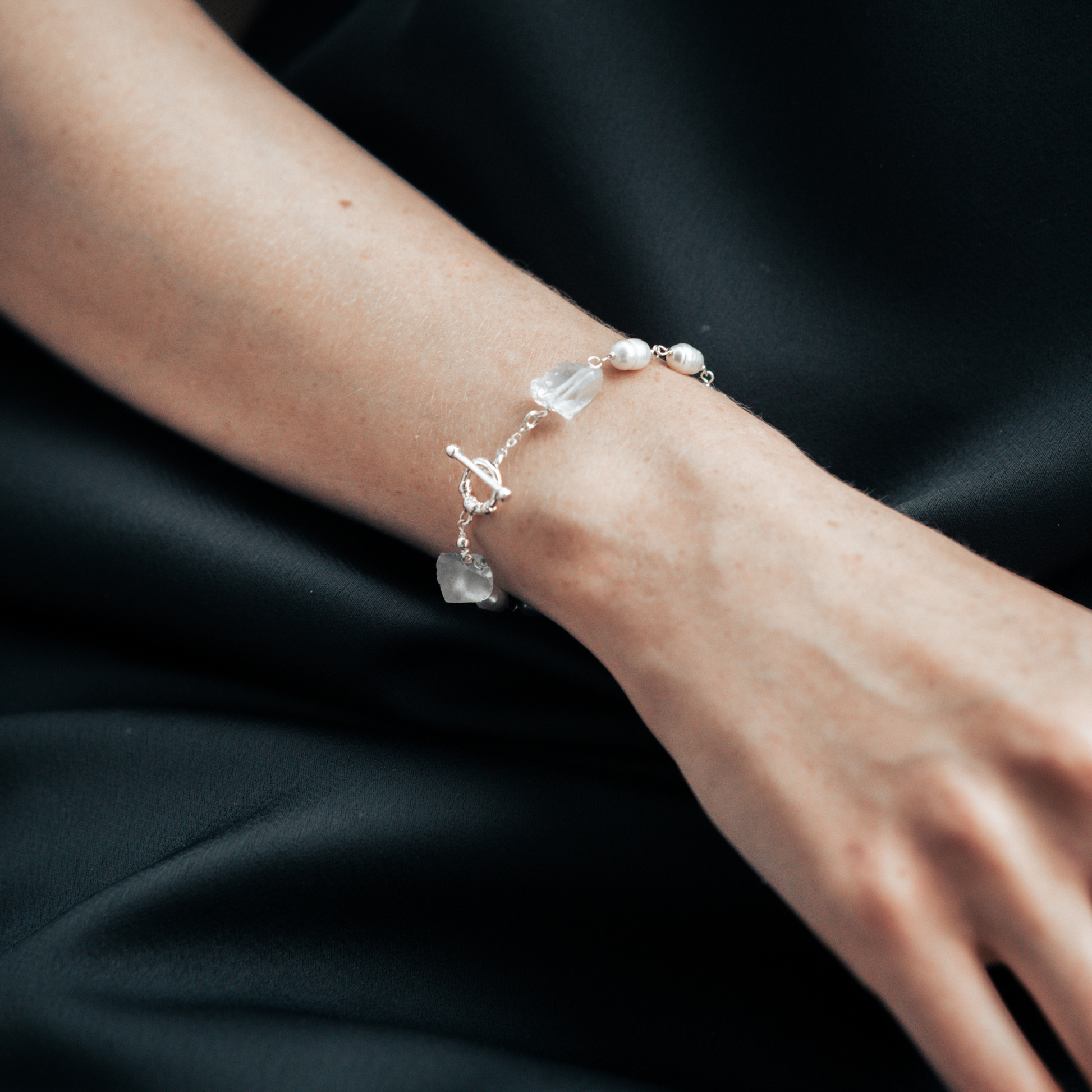 Some of the basic pearl and stone pieces in our jewelry come from shops in Toronto, while other vintage beads and uniquely shaped crystals are sourced from around the world. However, these special gemstones are available in limited quantities, which is why some of our designs are produced in only a few pieces.
