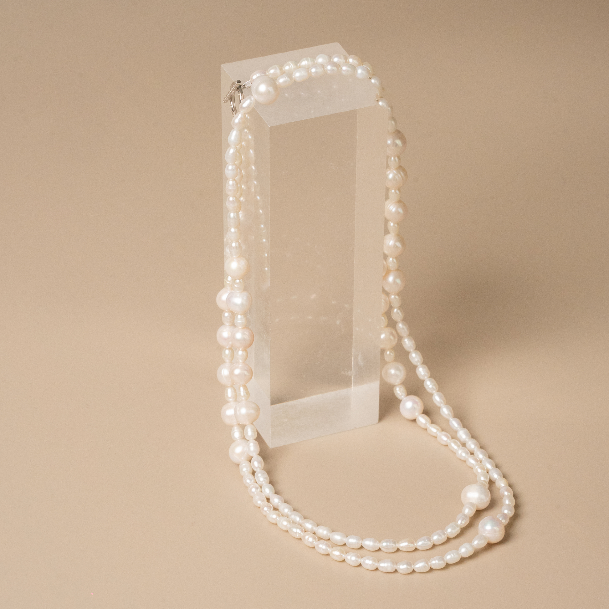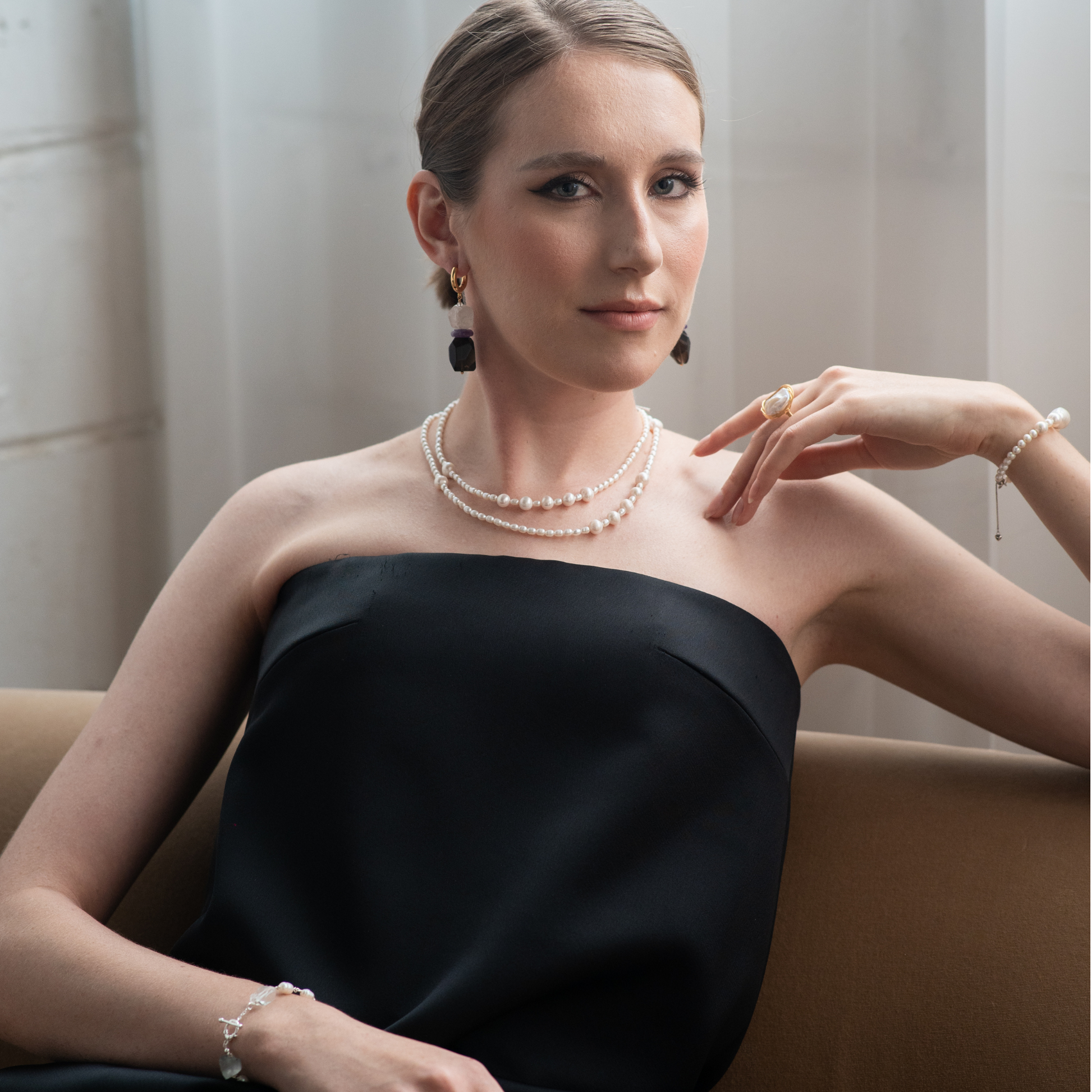 Some of the basic pearl and stone pieces in our jewelry come from shops in Toronto, while other vintage beads and uniquely shaped crystals are sourced from around the world. However, these special gemstones are available in limited quantities, which is why some of our designs are produced in only a few pieces.