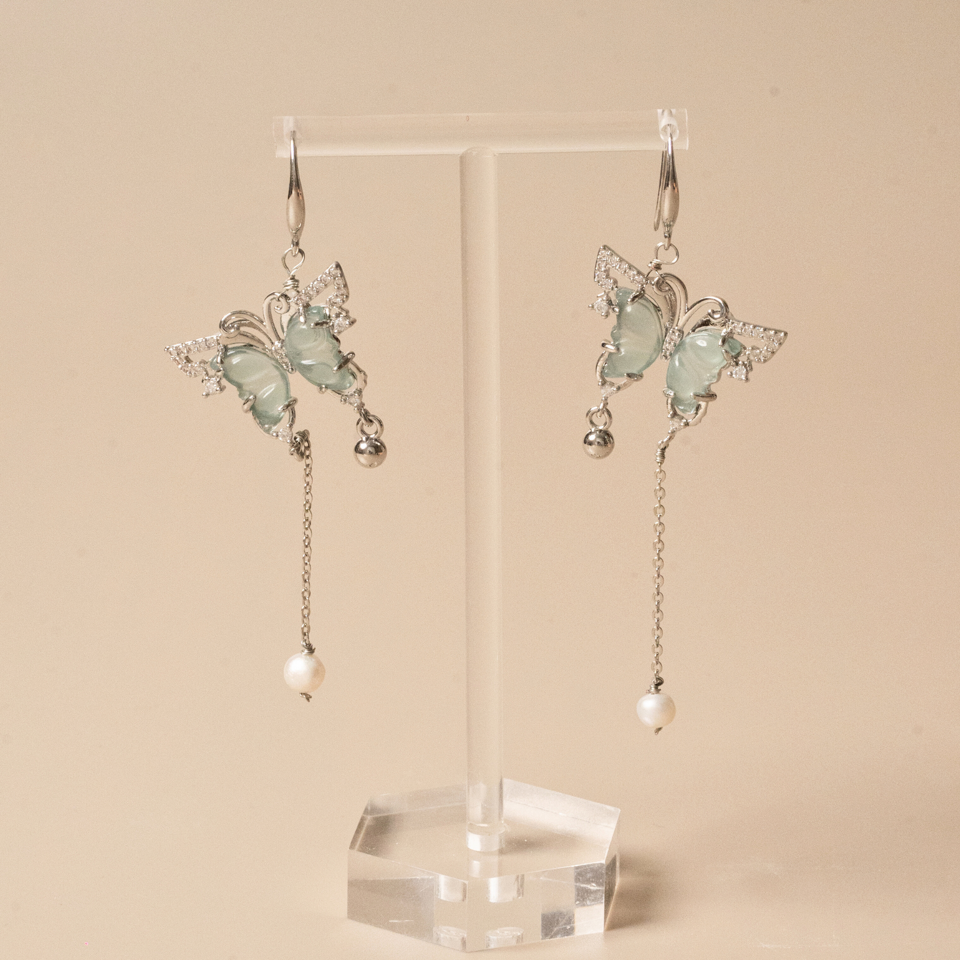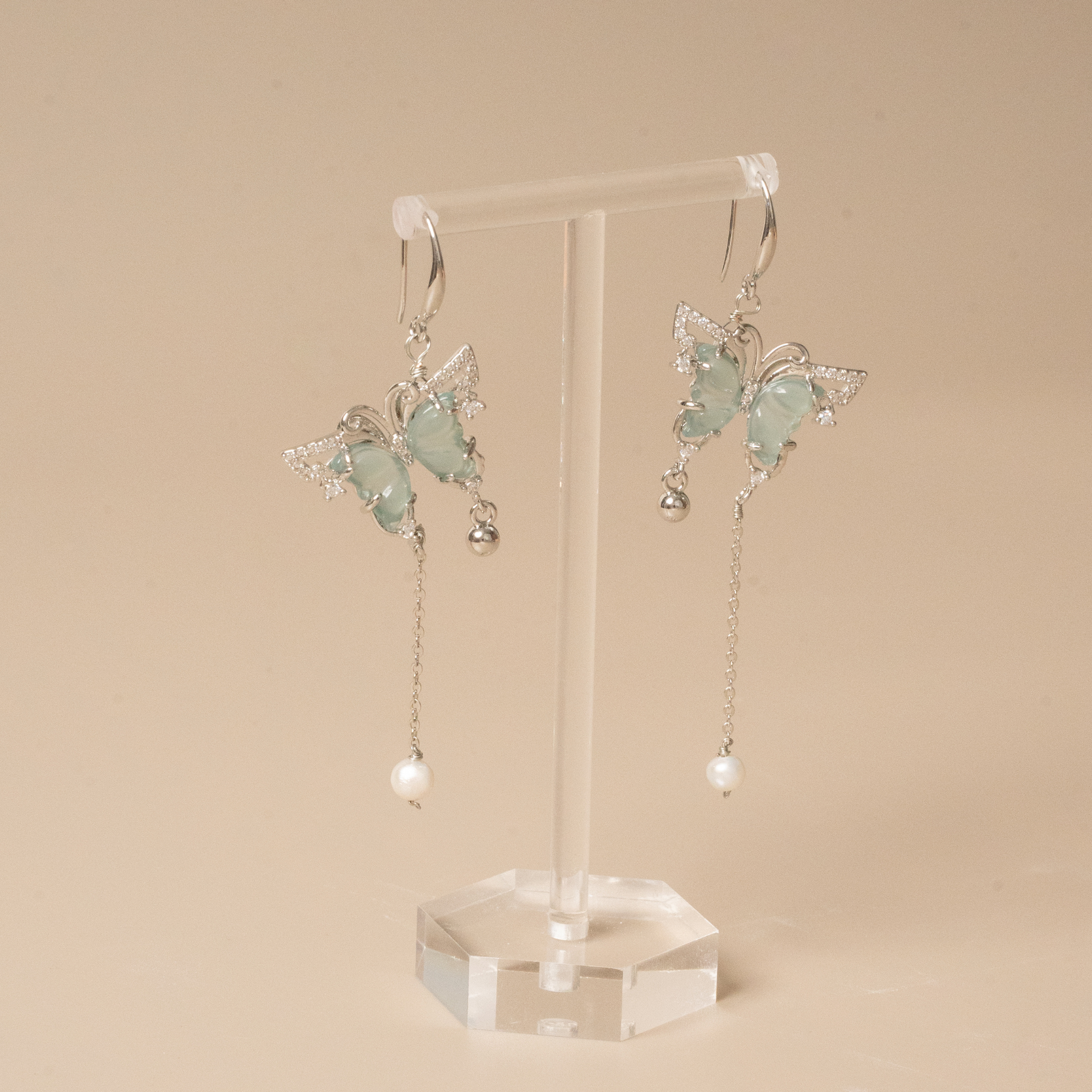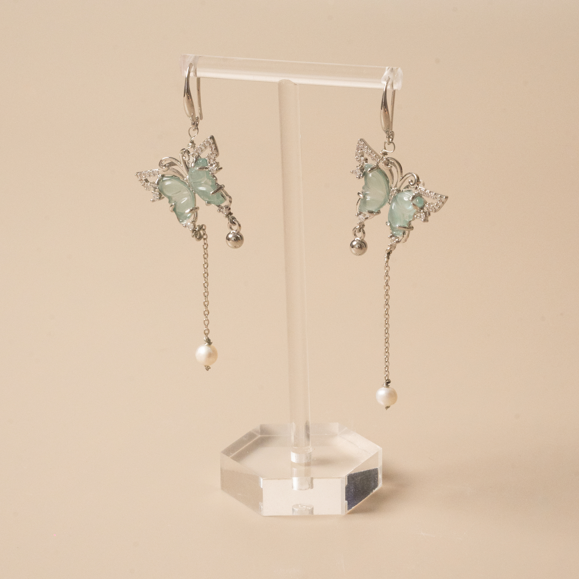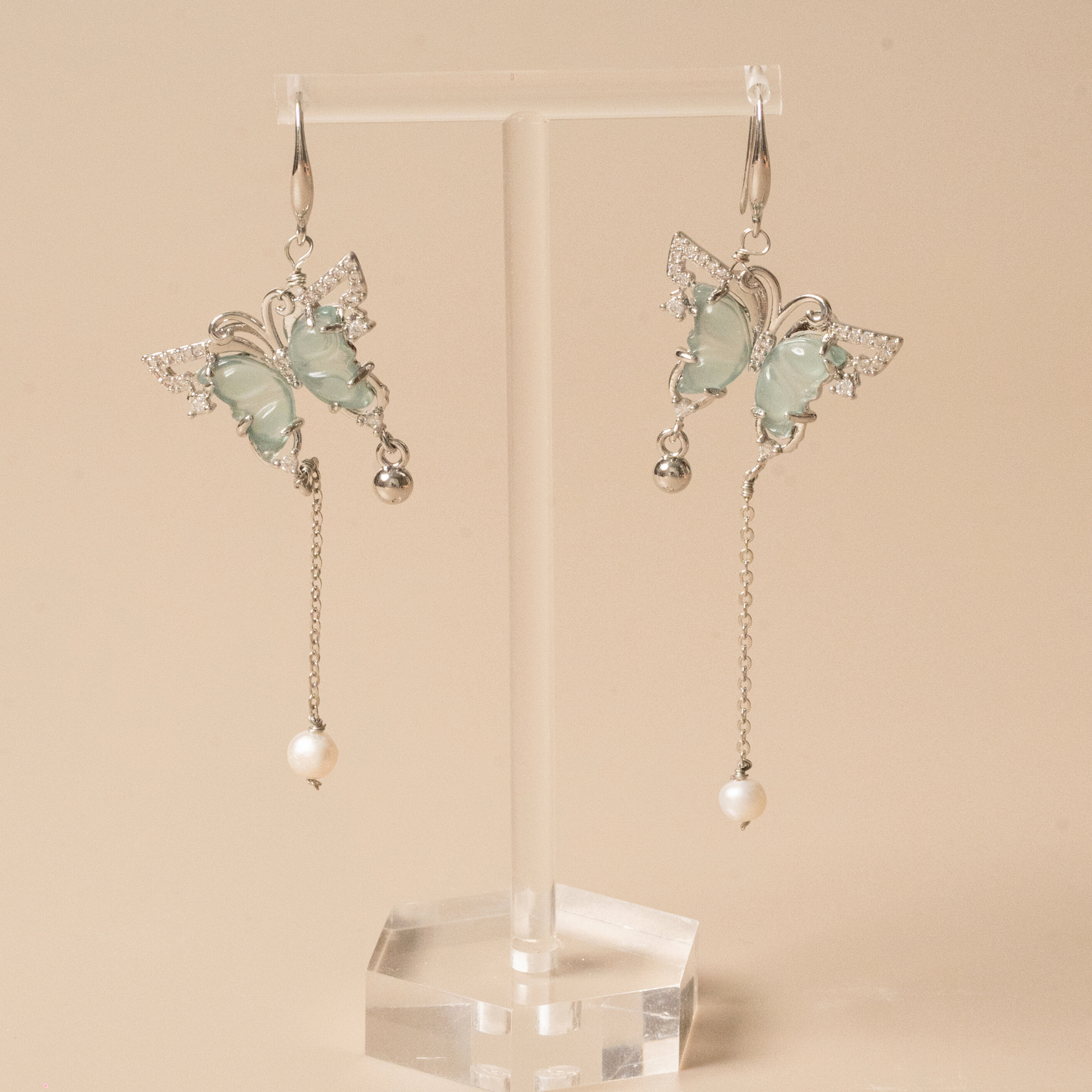 • Delicate jade-toned butterflies accented with sparkling crystals and finished with graceful pearl drops.