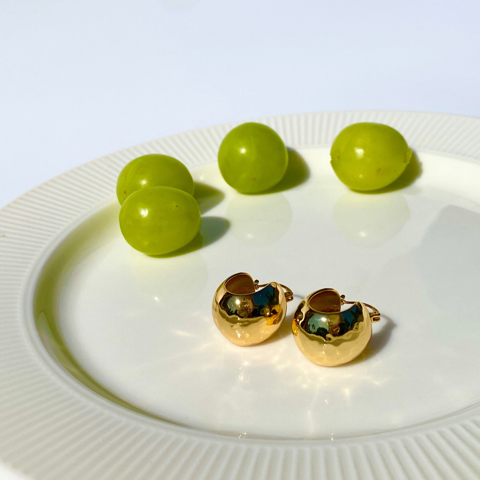 • 24k gold-filled spherical earrings. These earrings have a unique surface texture compared to other spherical earrings, making them more sparkling and stylish.