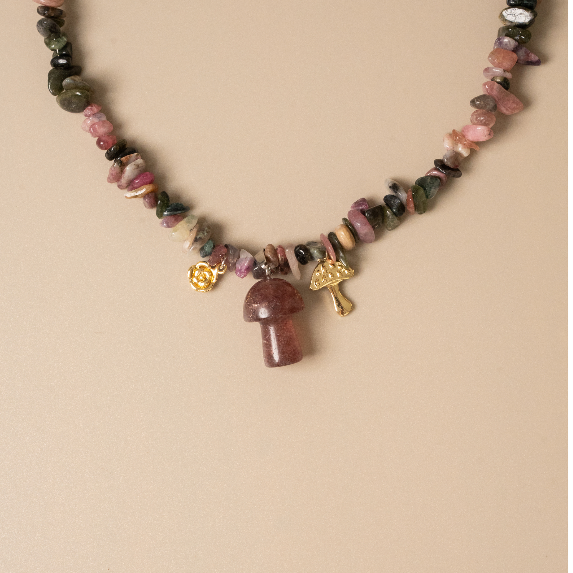• Raw Tourmaline gemstones(watermelon gem) and strawberry crystal as the pendant.