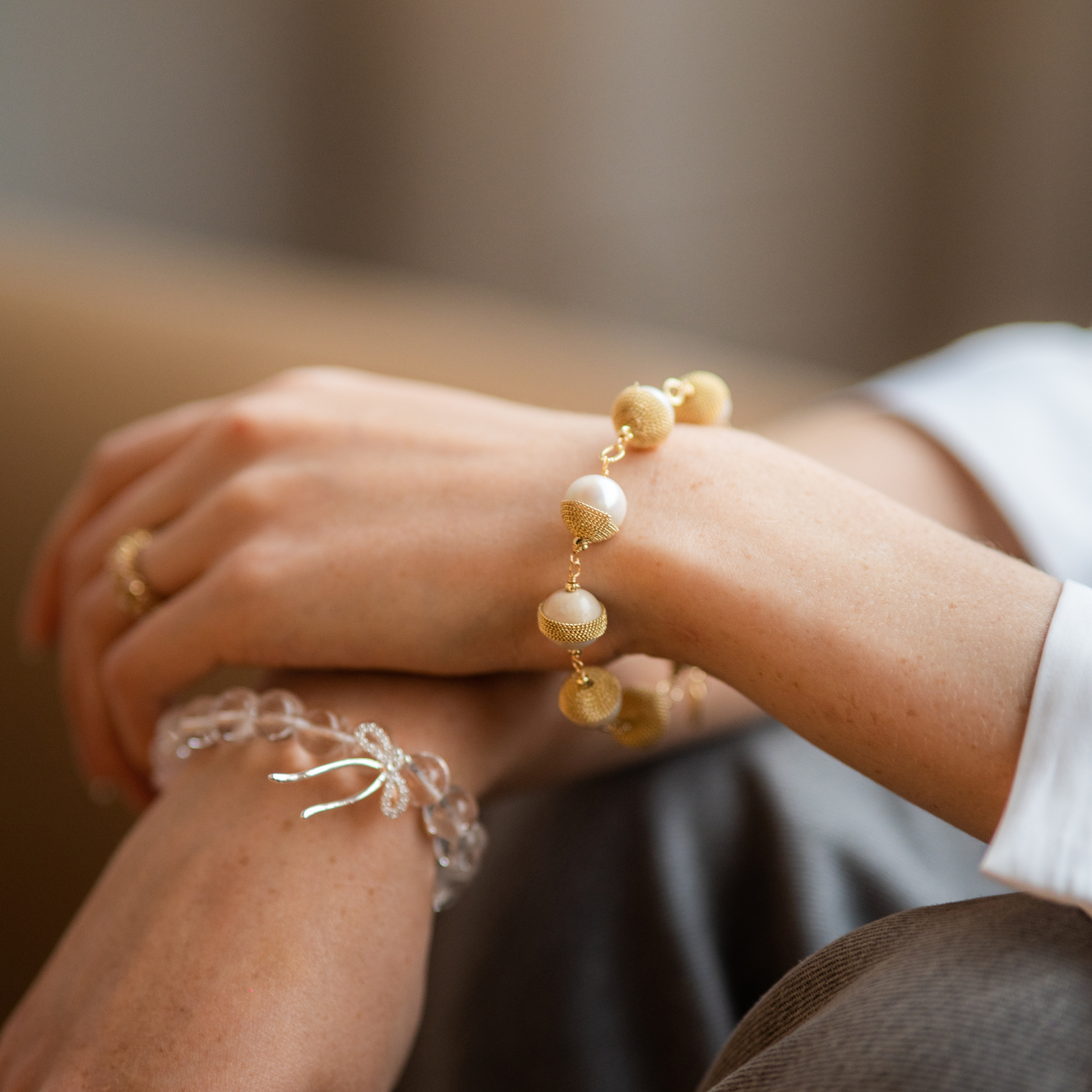 1. Natural Materials: We use natural pearls and crystals as our primary materials. These materials are not only beautiful but also carry unique energies. For example, yellow crystals attract wealth, blue crystals help with expression and inner calmness, and pink crystals symbolize self-love and love.