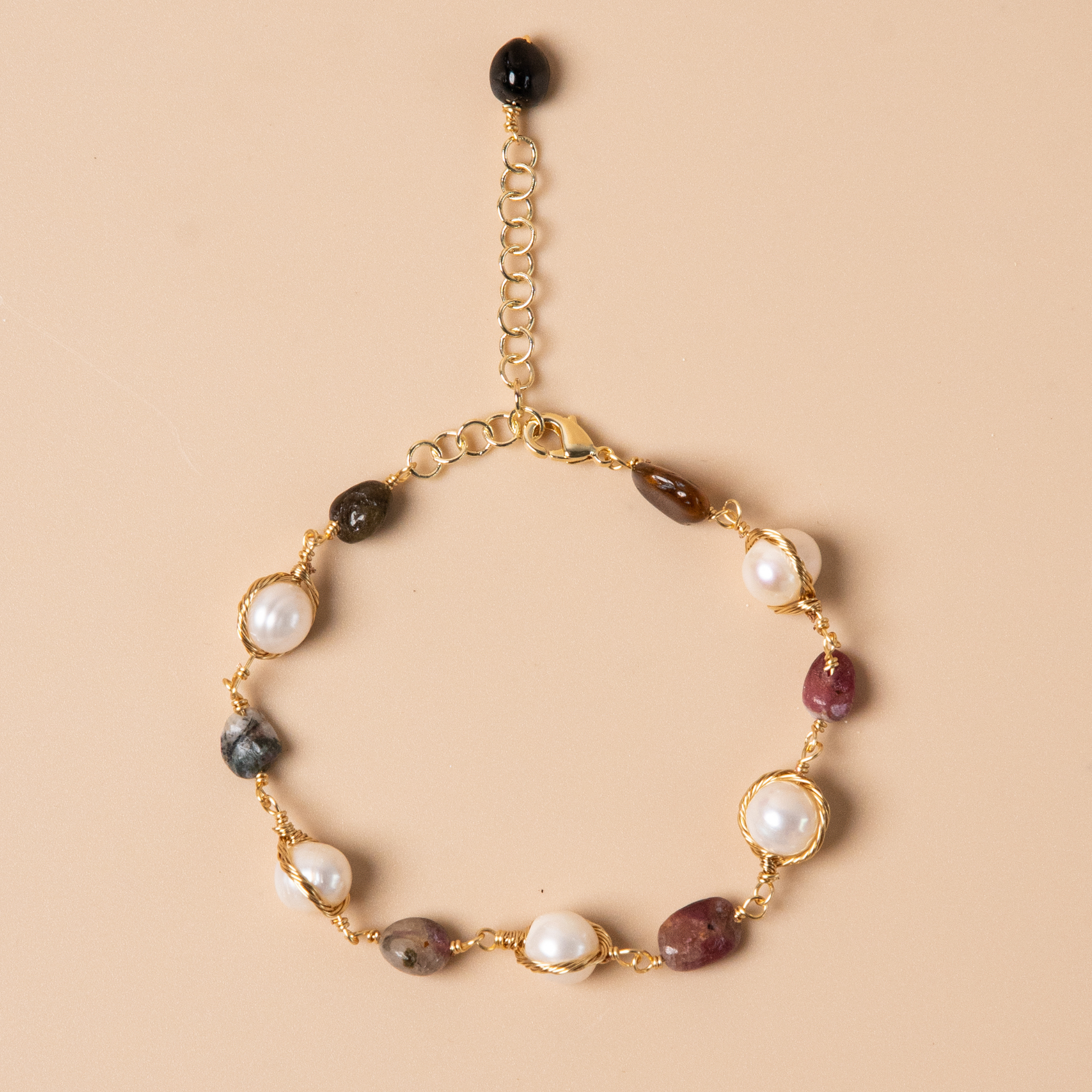 1. Natural Materials: We use natural pearls and crystals as our primary materials. These materials are not only beautiful but also carry unique energies. For example, yellow crystals attract wealth, blue crystals help with expression and inner calmness, and pink crystals symbolize self-love and love.
